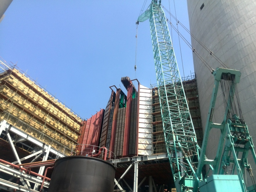 2014年9月,天潤新能源與臺(tái)州第二發(fā)電有限公司簽訂了總價(jià)值約9262萬元的熱媒水管式煙氣放熱器及煙氣再熱器設(shè)備采購合同。合同一經(jīng)簽訂,臺(tái)二MGGH項(xiàng)目便緊鑼密鼓開展了起來。MGGH系統(tǒng)輔助設(shè)備于2014年春節(jié)前陸續(xù)到達(dá)臺(tái)二現(xiàn)場,#1爐所有72個(gè)煙氣放熱器模塊以及52個(gè)煙氣再熱器模塊也于2015年4月全部送至臺(tái)二現(xiàn)場,#2爐所有模塊七月底也已全部送至現(xiàn)場安裝。截止目前,臺(tái)二電廠MGGH設(shè)備#1爐已經(jīng)全部安裝調(diào)試完成,并于2015年9月14日順利通過電廠168小時(shí)性能試驗(yàn);#2爐目前已經(jīng)吊裝完成,現(xiàn)在正在安裝外圍輔助設(shè)備,預(yù)計(jì)十月份正式進(jìn)入調(diào)試階段。如果調(diào)試順利,十一月便可以進(jìn)入168小時(shí)調(diào)試階段。由電廠反饋回來的#1爐運(yùn)行數(shù)據(jù)可以看出,MGGH系統(tǒng)的運(yùn)行結(jié)果完全符合我們的設(shè)計(jì)要求,煙氣放熱器于煙氣再熱器的進(jìn)出口煙溫基本與理論計(jì)算值相吻合,極大的消除了電廠煙囪“冒白煙”的情況??梢哉f,自MGGH系統(tǒng)投運(yùn)之后,肉眼幾乎看不見煙囪有煙冒出來。